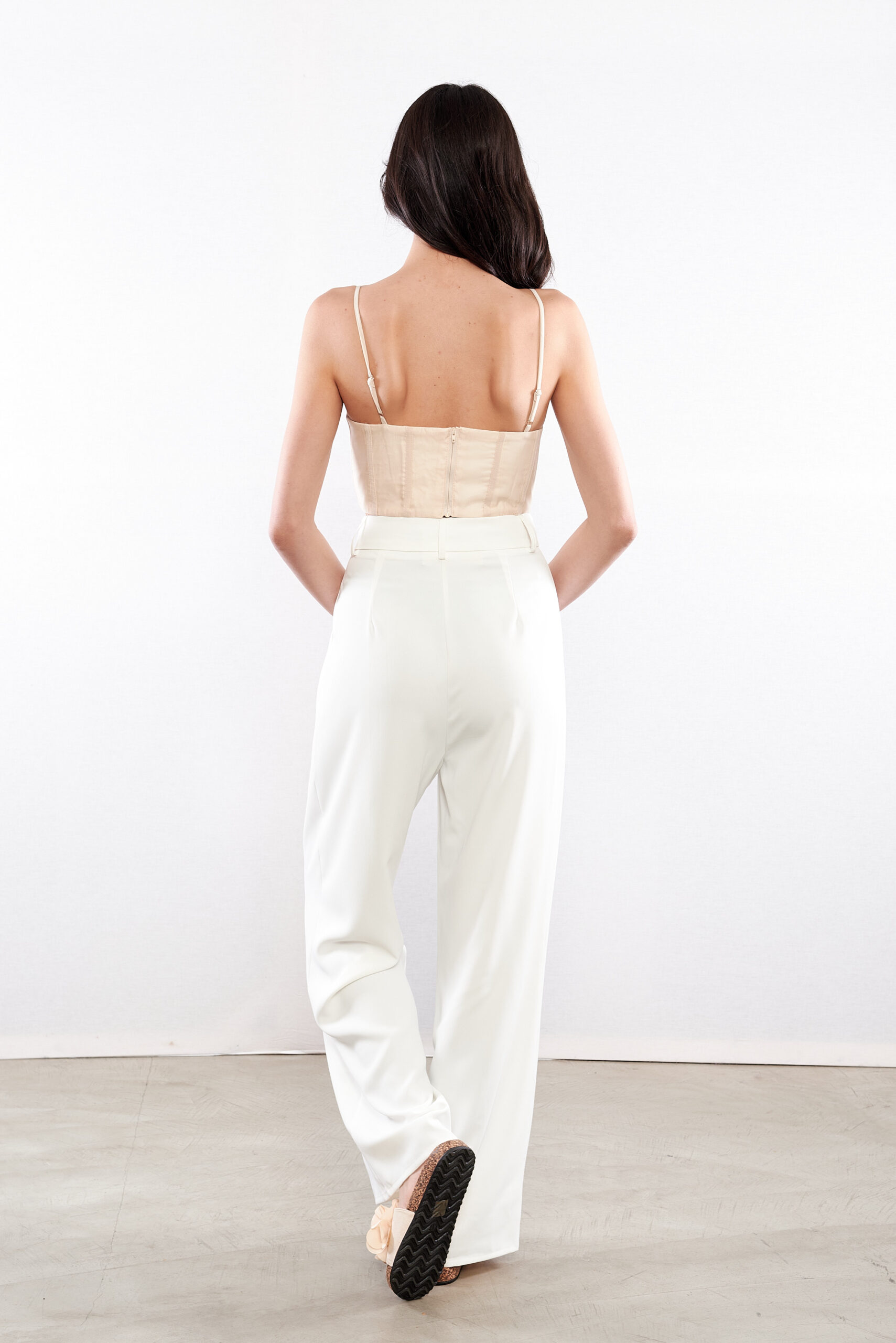 Glamorous Studio – Top corsetto da donna in organza color nude con increspature sul seno.