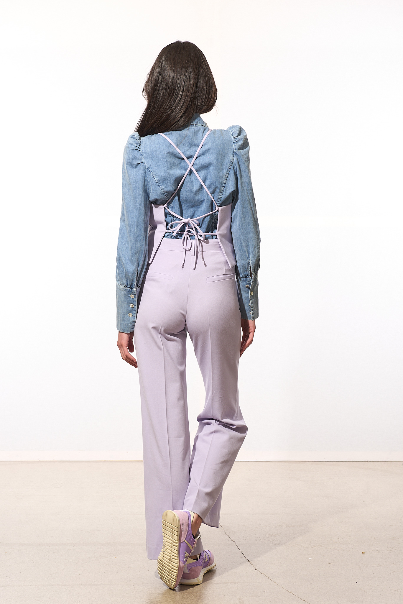 Top gilet con stringhe posteriori.