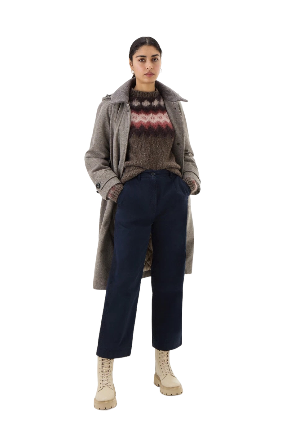 Avvolgiti nella morbidezza di un capo dall’allure vintage perfetto per i tuoi outfit casual. Realizzato in misto lana e mohair, questo maglione girocollo Made in Italy sfoggia il caratteristico motivo Fair Isle sulla parte superiore e sul fondo delle maniche. Le maniche raglan e la vestibilità comoda offrono il comfort necessario nelle giornate più fredde. Il colletto, i polsini e il fondo sono a coste. La targhetta in metallo con logo sul fondo aggiunge un tocco di stile Woolrich.