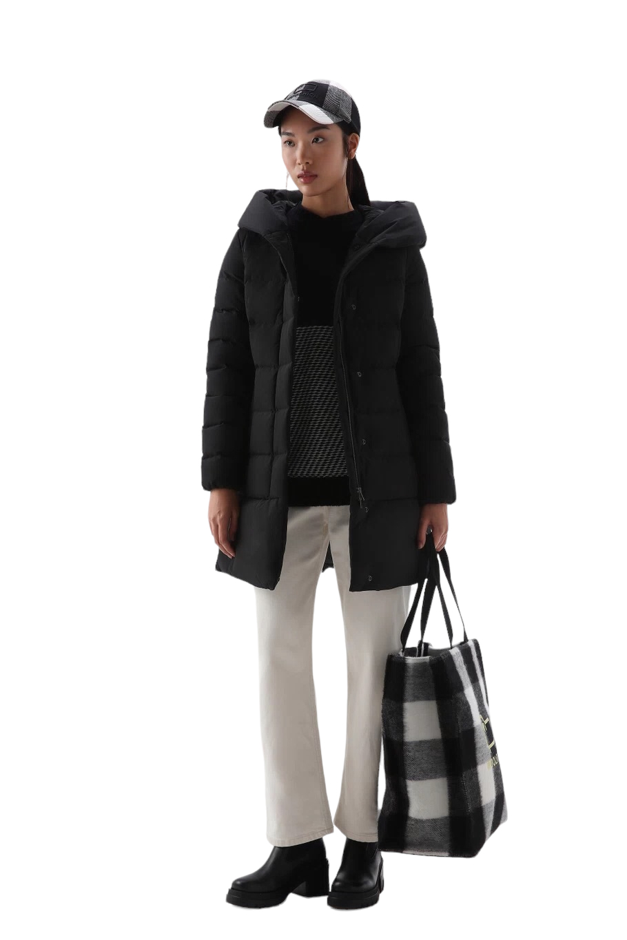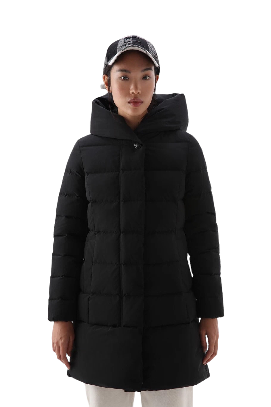 Con la sua morbida silhouette trapuntata e le sue caratteristiche funzionali ispirate al design Woolrich, questo parka merita sicuramente un posto nel tuo guardaroba. Realizzato in tessuto Urban Touch idrorepellente e resistente al vento, è imbottito in piuma d’anatra per offrirti calore e comfort eccezionali. Il generoso cappuccio garantisce di poter affrontare qualsiasi condizione atmosferica, mentre la chiusura frontale nascosta e le tasche a filetto donano al capo una linea sobria e discreta.