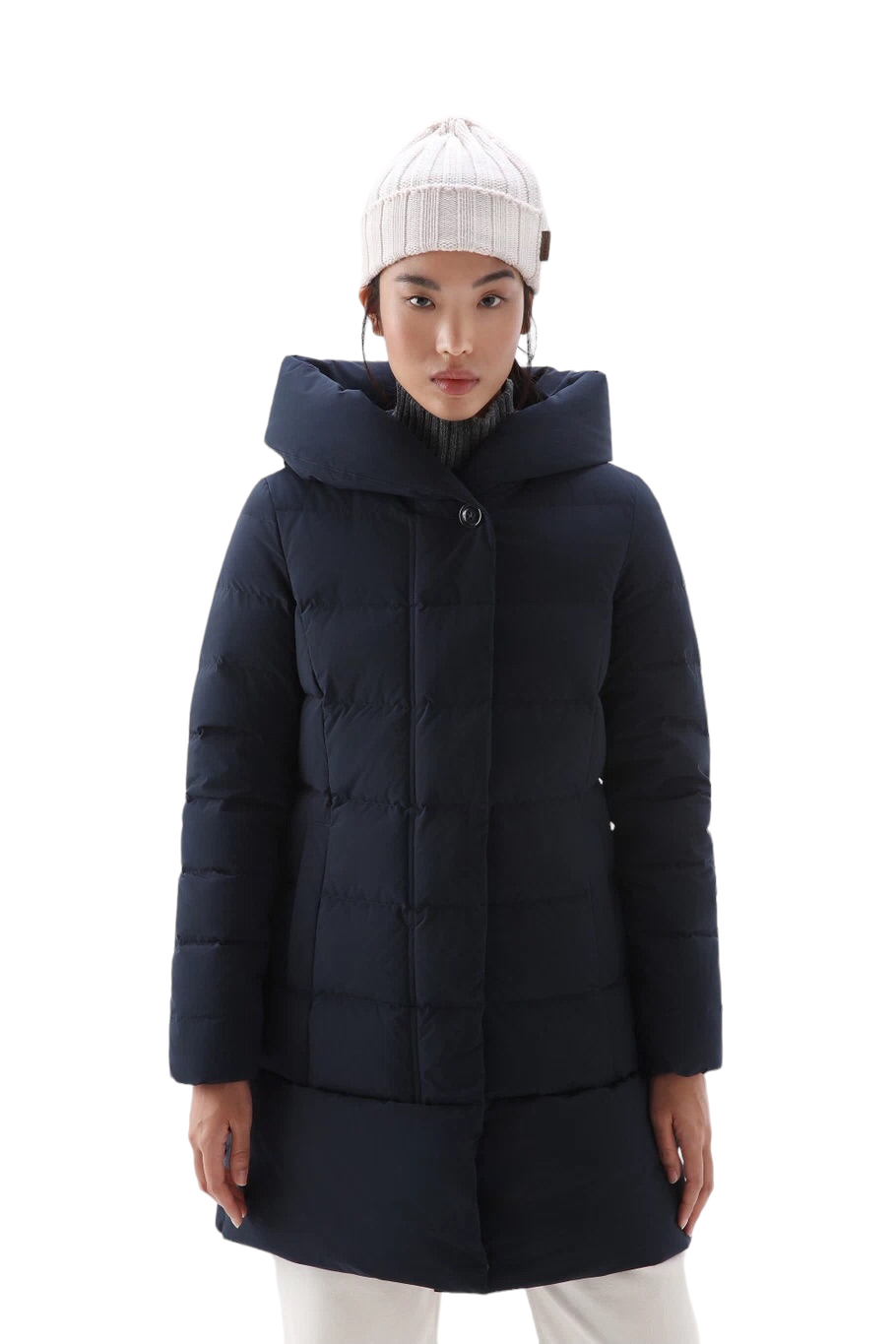 Con la sua morbida silhouette trapuntata e le sue caratteristiche funzionali ispirate al design Woolrich, questo parka merita sicuramente un posto nel tuo guardaroba. Realizzato in tessuto Urban Touch idrorepellente e resistente al vento, è imbottito in piuma d’anatra per offrirti calore e comfort eccezionali. Il generoso cappuccio garantisce di poter affrontare qualsiasi condizione atmosferica, mentre la chiusura frontale nascosta e le tasche a filetto donano al capo una linea sobria e discreta.